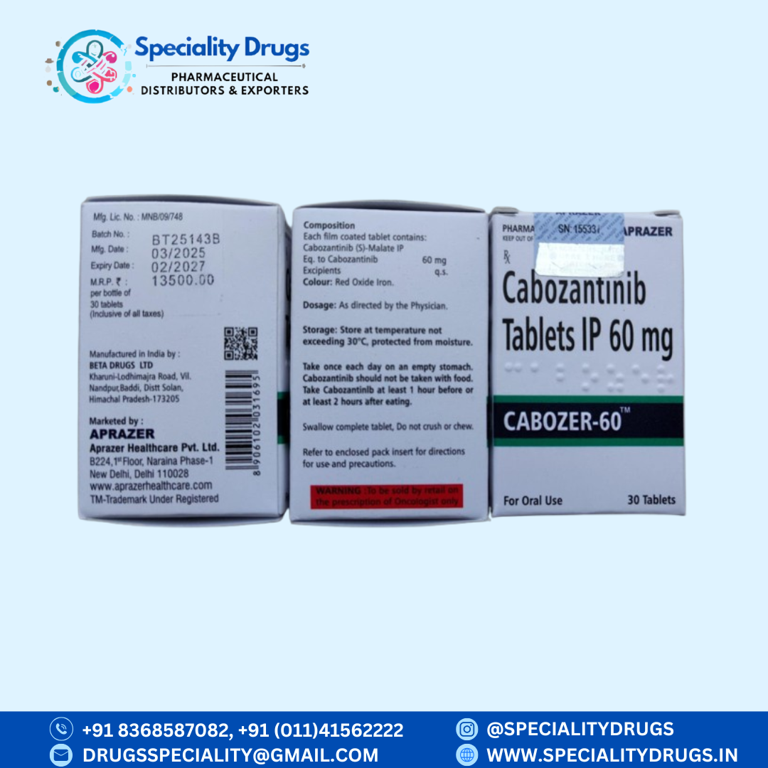 Cobozantinib Tablet 60mg is an anti-cancer medicine used to treat certain types of cancers, including kidney, liver, and thyroid cancers. It helps slow or stop the growth of cancer cells in the body.