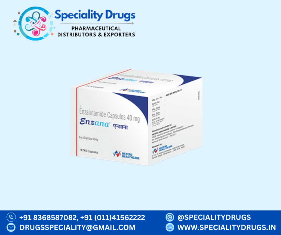 ENZANA 40 mg contains Enzalutamide, an oral medication classified as an androgen receptor inhibitor. It is used in advanced prostate cancer management, particularly in men whose disease has spread and is resistant to standard hormone therapy. ENZANA is available in 40 mg capsules for convenient daily use under medical supervision.