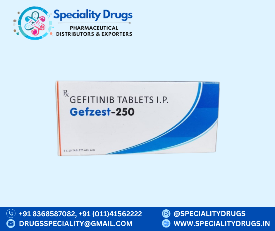 GEFZEST-250 is a targeted cancer therapy medication containing Gefitinib, used to treat non-small cell lung cancer (NSCLC) by inhibiting the growth and spread of cancer cells with specific EGFR mutations.